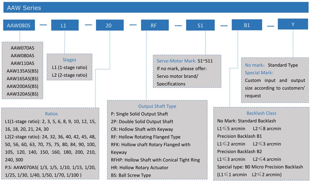 The MKD AAW-A(B)S-RFK servo motor gearboxes are widely applied in heavy load occasions, such as the coupling mechanism, belt conveyor, CNC machine tools, bag making machinery, plastic machinery, printing machinery.