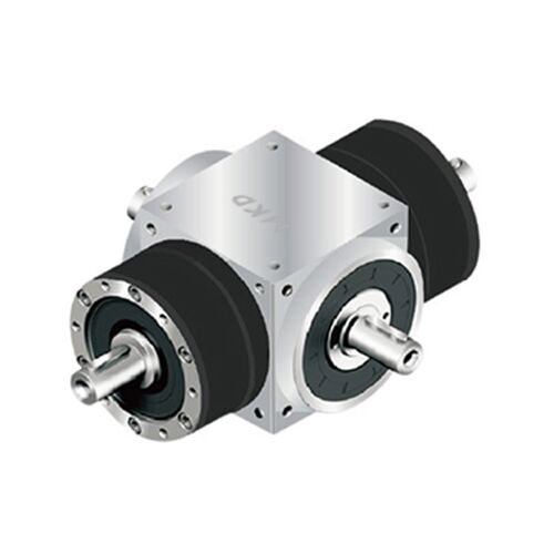 The MKD AT-4M series steering gearbox is a 1:1 ratio servo gearbox with a design of spiral bevel gears inside. It features of four drive shafts joined by three spiral bevel gears. The special design of AT-4M spiral bevel gearbox is suitable for operations of continuous operation mode (S1) and cycle operation mode (S5). AT-4M right angle gearboxes are widely used in line shaft applications and especially for servo applications.